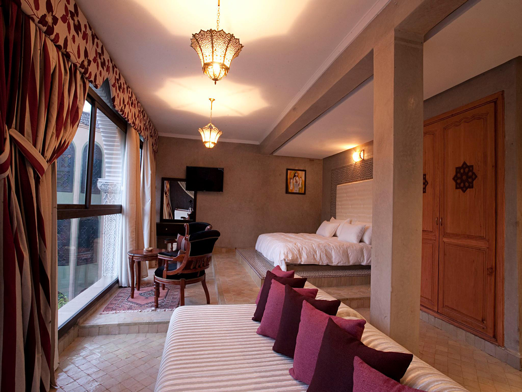 旧市街に位置し、全室スイートタイプのデラックスホテルです。モロッコ風のデザインのインテリアが異国情緒を誘います。