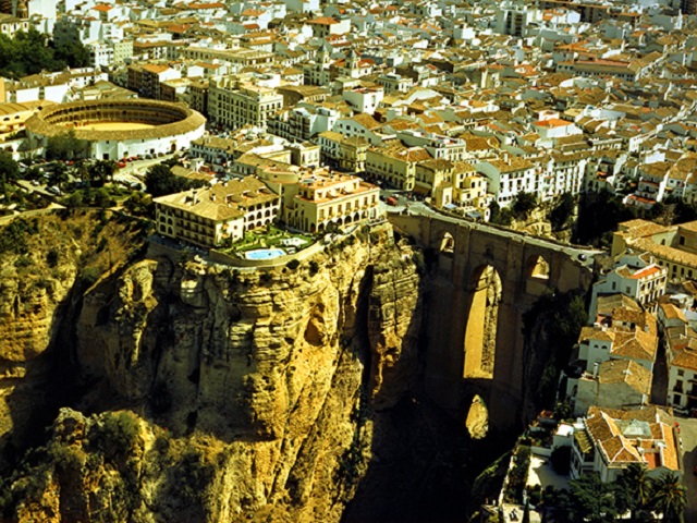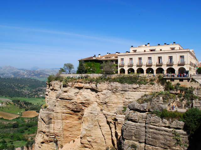 切り立った崖の上にある町ロンダ。18世紀の旧市庁舎を改装した国営のパラドールは、ヌエボ橋のたもとに立ち、庭園やサロンからは峡谷の素晴らしい眺望が広がります。館内はモダンに装飾され、明るい雰囲気に包まれています。