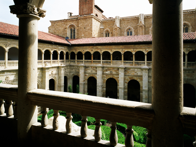数あるパラドールのなかで最も華麗といわれる建築。重厚な階段が印象的なエントランス、美しい緑を囲むパティオ(中庭)など、かつての栄華が偲ばれます。