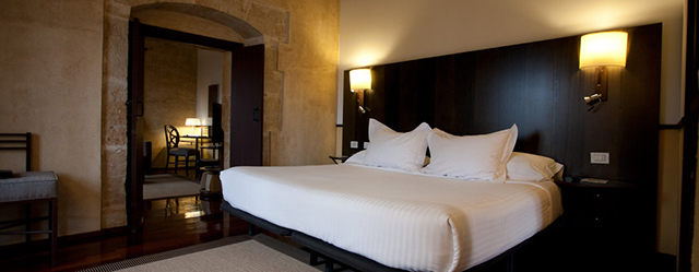 旧市街に位置し、かつて修道院だった建物を改装した石造りのモダンなホテル。お部屋は昔ながらの石壁や梁などが残り、趣のある雰囲気にまとめられています。