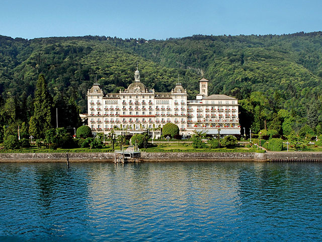 ヘミングウェイが幾度も滞在したことで知られる18世紀の邸宅を改装した、歴史ある名門ホテルです。ロビーは豪華な装飾が施されたエレガントな造りで、客室もアンティーク家具を配し、高級感のあるインテリアでまとめられています。目の前には群青色のマッジョーレ湖が広がります。