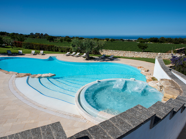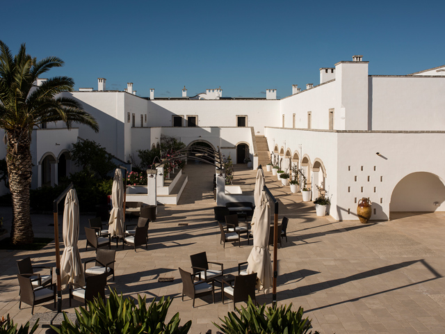 プーリアらしいのどかな田園地帯に位置するリゾートホテルです。白を基調とした建物や客室は、温かみのある明るい雰囲気にまとめられています。