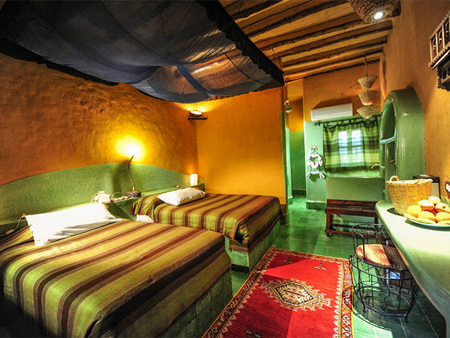 美しい砂丘が連なるサハラ砂漠が目の前に広がるホテルです。ホテルの敷地内にらくだ乗り場があるため、早朝の日の出観賞はホテルから直接出発することができます。夜は星空もお楽しみいただけます。