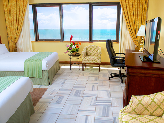岬の先端付近に位置するデラックスホテルです。屋上テラスからはベリーズ・シティの街並みや美しいカリブ海を一望できます。