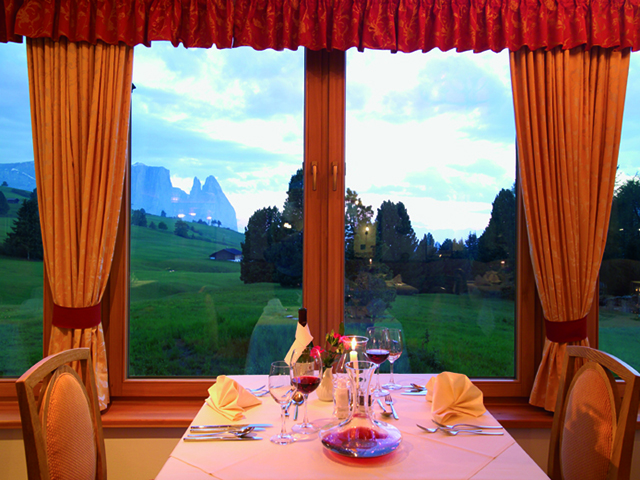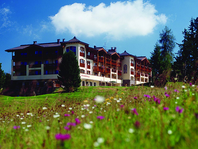 ドロミテの山々が間近に見える高台のアルペ・ディ・シウジに建つホテルです。 のんびりとした滞在をお楽しみください。