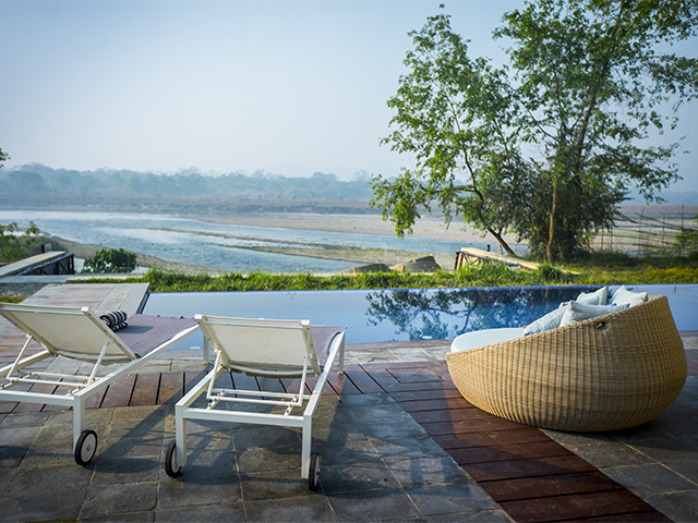 チトワン国立公園を流れる川沿いに建ち、ロッジの目の前にやってくる動物を観察するチャンスもあります。客室はプライベートプール付きのコテージタイプで贅を尽くした滞在をお楽しみいただけます。