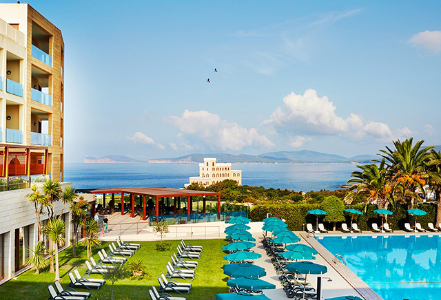 サルデーニャ島北西の町、アルゲーロの旧市街から徒歩約10分の海岸沿いに位置するホテル。客室はモダンな木目調の家具やファブリックなどで品よくまとめられ、落ち着いた雰囲気が漂います。