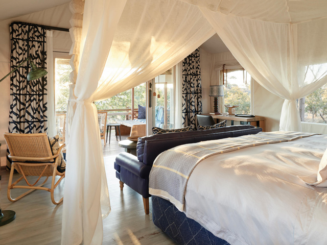 チョベ国立公園の奥深く、セスナ機でのみアクセス可能な隠れ家ロッジ。高級ホテルブランド「ベルモンド」が運営する全12室の豪華ロッジで、ボツワナのサファリロッジでは珍しい冷房設備が完備され、快適に滞在できます。広々とした各客室のテラスには屋根付きのデイベッドがあり、日中も動物を観察しながら贅沢な時間を過ごせます。