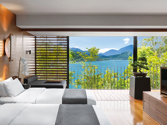 日月潭の湖畔にひっそりと佇む、かつての蒋介石の別荘跡に建てられたデラックスリゾートホテル。すべての施設が湖に溶け込むような創りで、大きく湖に向けて開かれた部屋からは朝日に輝く湖水、エメラルド色に輝く湖、夕暮れに迫る山々の景観が心を癒してくれます。