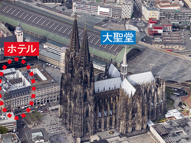 旧市街に位置し、ホテルを一歩出るとケルン大聖堂が目の前にそびえる抜群の立地を誇るケルン随一の名門ホテルです。石造りの堂々とした外観には歴史の重みが感じられます。旧市街の中心にあるため、散策やお買い物にも便利です。