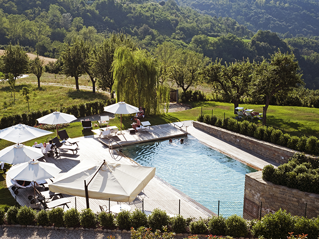 ピエモンテ州ランゲ地方の田園を一望する丘の上に建つ農家を改装したホテルです。ホテル内のミシュラン星付きレストランでの夕食もお楽しみいただきます。