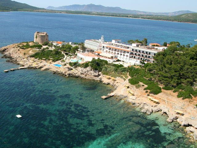 アルゲーロの郊外、ポルト・コンテ州立公園近くに位置するリゾートホテル。白い壁にベージュの屋根をあしらった建物で、客室は機能性と快適さを兼ね備えています