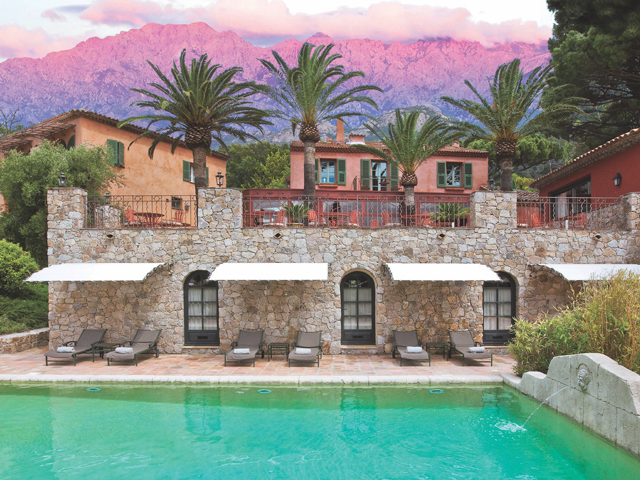 かつてルイ15世が所有していた敷地に立つ家族経営のオーベルジュです。カルヴィの旧市街からもほど近く、海を至近に控えながら、背後には2,000m級の山々の頂きが望める贅沢なロケーションです。落ち着いた内装を基調に、芸術に造詣が深いオーナー夫妻の美的センスが随所に光ります。至福のひとときをお楽しみいただけます。