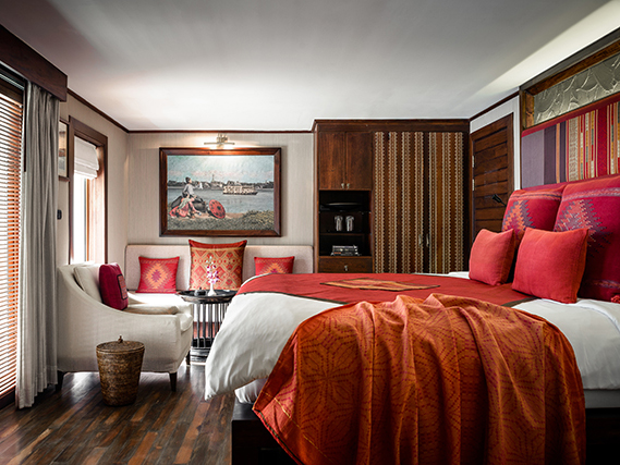 全21室のデラックス船「サンクチュアリ・アーナンダ号」は、アフリカの豪華ロッジを運営する「サンクチュアリ・リトリート社」が2014年に観光なども組み込んだオールインクルーシブ制の豪華船です。ビルマ様式を取り入れたクラシックな雰囲気、広々とした客室、受賞歴のあるシェフのお料理など優雅な船旅をお楽しみください。