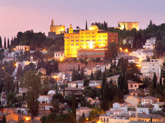 アルハンブラ宮殿にほど近い丘の中腹に立つ宮殿風のデラックスホテルです。存在感と趣きのある建物は2017年に改装されました。広々としたロビーには伝統を取り入れた調度品が配され、エレガントな雰囲気が漂います。