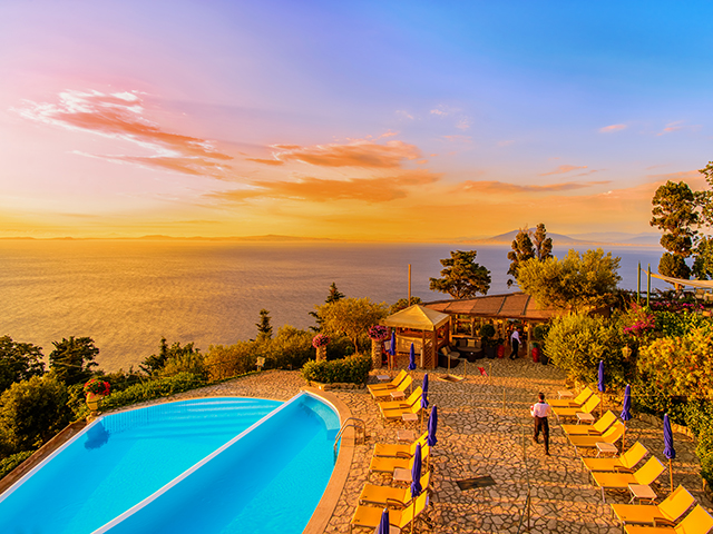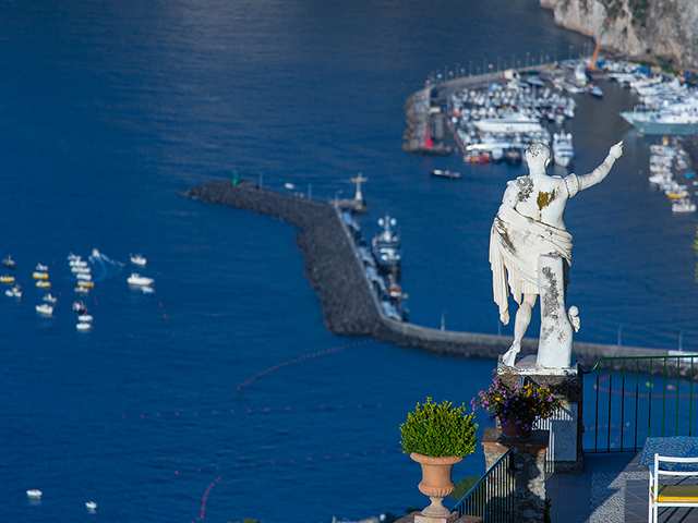 かつて皇帝(シーザー)アウグストゥスが造った庭園がある名門オーベルジュ。テ ラスからはナポリ湾とソレント半島、さらに天気が良い日は、ヴェスヴィオ山の絶景を見渡すことができます。世界の上流 階級のお客様をもてなしてきた極上のオーベルジュ滞在をお楽しみください。