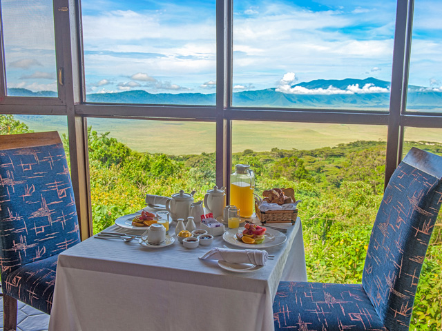 クレーターの外輪に位置するロッジです。レストランなどからクレーターの景色を一望することができます。アフリカ様式の内装の広々とした造りのお部屋も好評です。