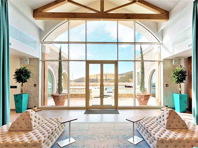アドリア海沿岸のルスティカ・ベイに位置するデラックスリゾートホテル。2018年にオープンしたホテルで、ホテル周辺には個人の邸宅やレストラン、ショップ、ヨットが停泊するマリーナなどがあります。エレガントな佇まいの客室は、海辺のホテルにふさわしい、爽やかで洗練されたインテリアでまとめられています。
