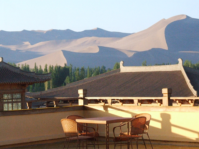 シルクロードの雰囲気を感じさせる敦煌の鳴沙山を望むホテルをご用意しました。朝、夕と太陽の光で刻々と表情を変える砂漠の景色をお楽しみいただけます。お部屋もかつての隊商宿を思わせるエキゾチックなインテリアで、かつてのシルクロードの雰囲気を存分に味わえます。