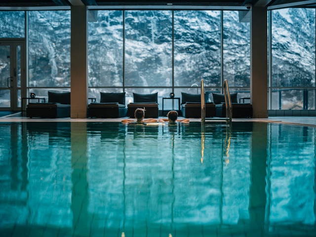 世界遺産のガイランゲルフィヨルドの湾の奥にある小さな町ガイランゲルのフィヨルドを見下ろすホテル。大自然に囲まれたプールやホテルの庭、フィヨルドを望むスパ(料金別途)などの施設が充実したリゾートホテルです。