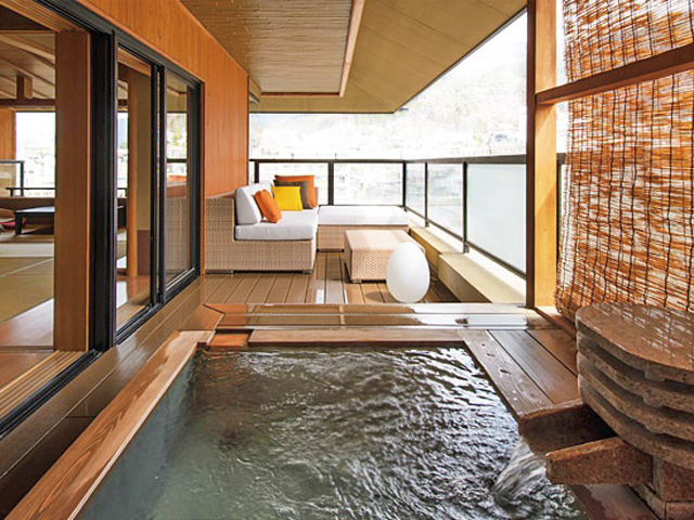江戸時代に油問屋として誕生した「あぶらや燈千」は、湯田中の湯をたたえた湯宿へ改築されました。露天風呂付客室からは、湯に浸かったまま信州の絶景を見渡すことができます。