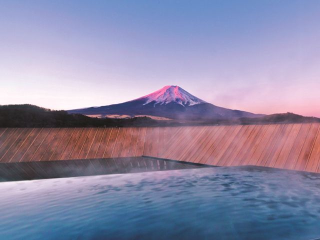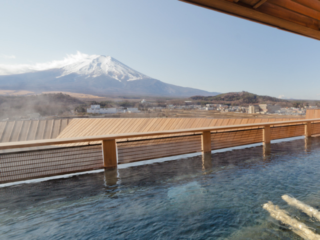 雄大な富士の大自然を目の前に望むる温泉宿です。およそ二万坪にも及ぶ、富士山と緑の山々を背景に広がる庭園の散策もお楽しみください。