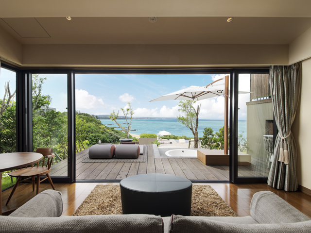 手つかずの自然が多く残る沖縄の東海岸に位置し、広大な敷地に19の客室が緩やかな海沿いの斜面に沿って建てられたリゾートホテル。開放感あふれる客室のテラスにはジェットバスを設え、コバルトブルーの海を望む宜野座の豊かな自然を身近に感じることができます。