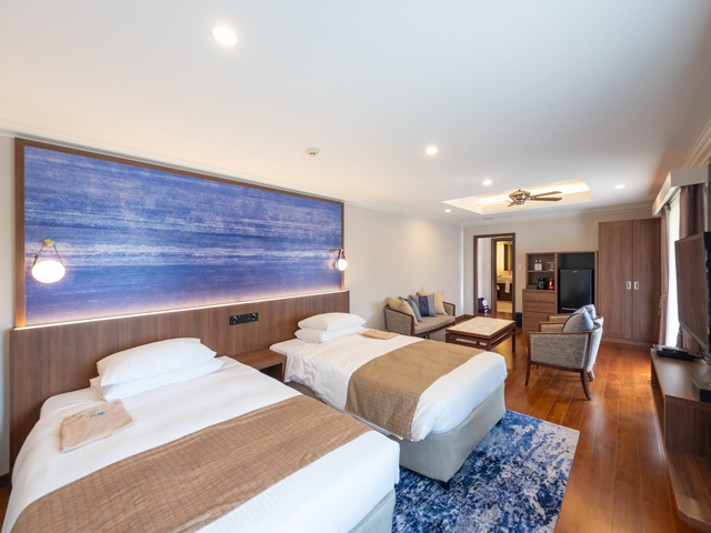 沖縄北部に位置し、やんばるの森と海に囲まれたホテル。約1kmも続くエメラルドグリーンの海と天然白浜のプライベートビーチがホテルの前に広がります。南国リゾートで癒やしのひとときをお過ごしください。