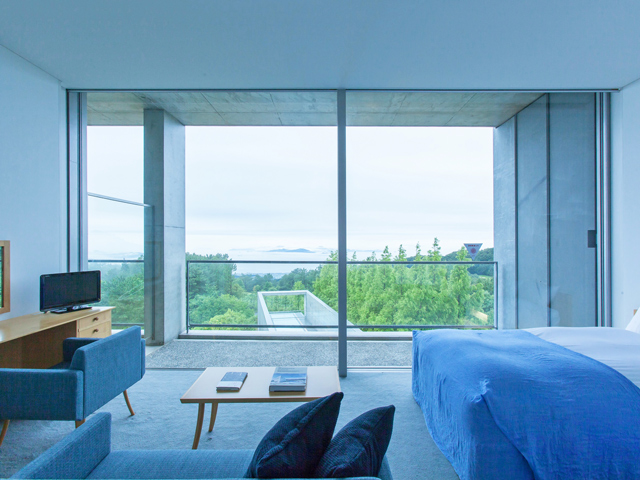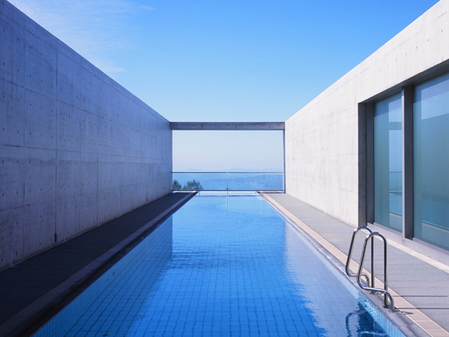 建築家 安藤忠雄氏設計のユニークなデザイナーズホテルで、元々は美術館を併設したゲストハウスとして建てられたホテルです。洗練された館内は落ち着いた雰囲気で、非日常の世界をお楽しみいただけます。プールサイドや一部のお部屋からは美しい瀬戸内海の景色をご覧いただけます。