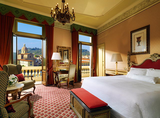 歴史あるホテルでありながら、モダンな設備を併せ持つデラックスホテル。ヴェッキオ橋やウフィッツィ美術館にほど近く、アルノ川沿いに佇む姿が歴史を感じさせます。フィレンツェでの4連泊を優雅に演出します。