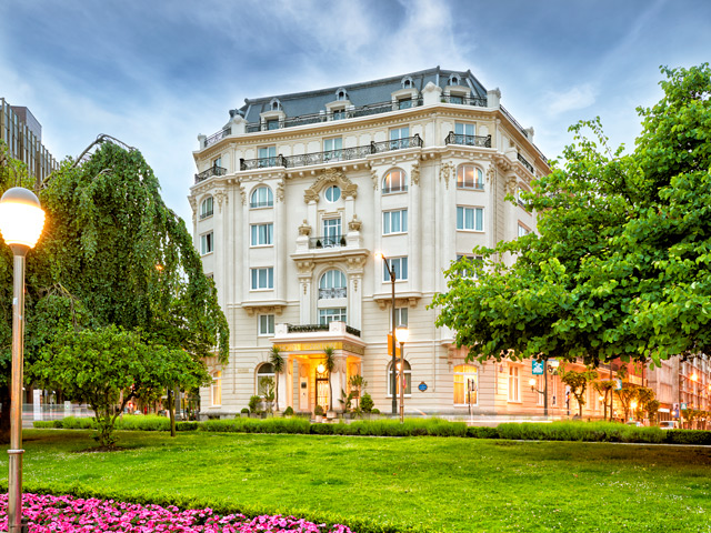 街の中心部にあるフェデリコ・モユア広場の一角に位置するホテルです。ドーム型ステンドグラスの天井を持つロビーは優雅で美しく豪華な雰囲気が漂います。 ビルバオ美術館やグッゲンハイム美術館など観光名所まで徒歩圏内にあります。