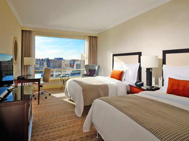 コペンハーゲンの中心を流れる運河沿いに立つ、設備の整ったデラックスホテルです。お部屋の大きな窓からも運河の風景をお楽しみいただけます。