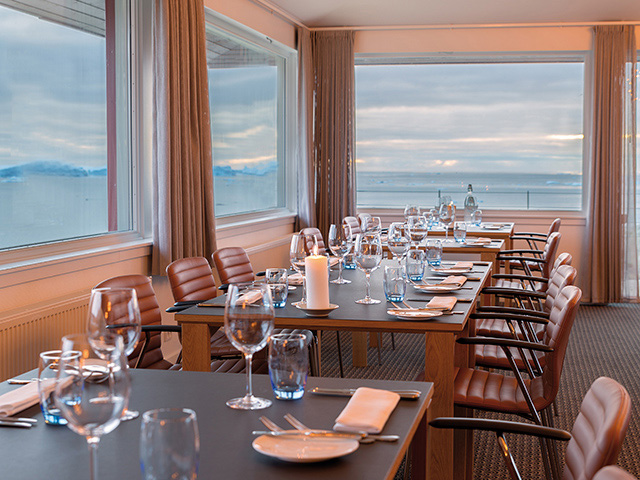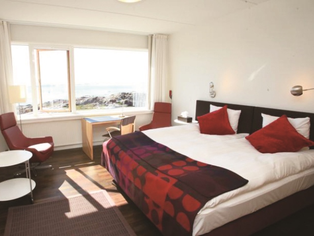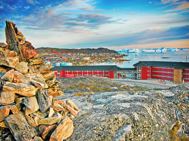 カラフルな家並みが可愛らしい北極圏の町イルリサットは世界遺産の氷河が間近に迫る町。町並みと北極海に開けたディスコ湾を見渡すように立つホテルに2連泊し、お部屋にいながらにして、氷塊が海に浮かぶ様子をご覧いただけます。