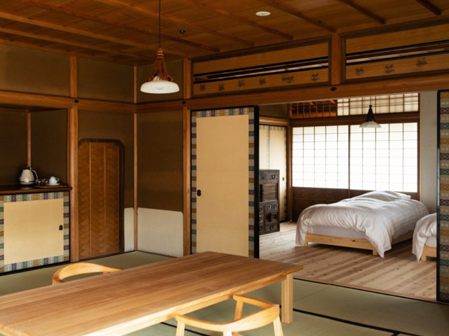 昔の商家の屋敷を改装したユニークなホテルです。寝室やバスルームは現代風に快適にリフォームされていますが、かつて金庫や蔵だったお部屋などそれぞれに趣があり、タイムスリップしたような体験をお楽しみいただけます。朝食は各お部屋のリビングでお召し上がりいただきます。(一部のお部屋は別室でお召し上がりいただきます)