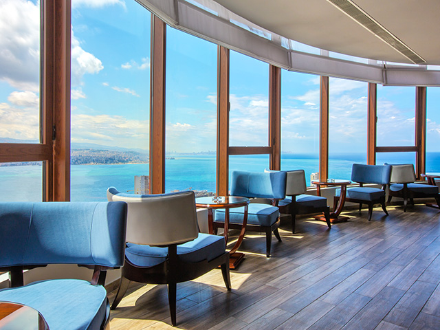 地中海を見渡す丘の上に立つデラックスホテル。ロビーやお部屋は近代的でスタイリッシュなデザインのインテリアで統一されています。ホテル内のレストランも好評をいただいています。 写真提供:BURJ ON BAY