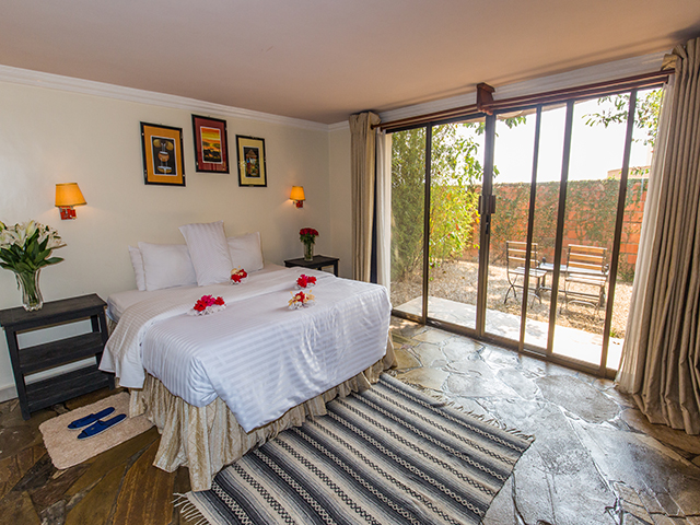 国立公園の山々の麓にあり自然豊かで静かな環境のロッジです。ホテルの敷地から雄大な山の眺めを楽しめます。