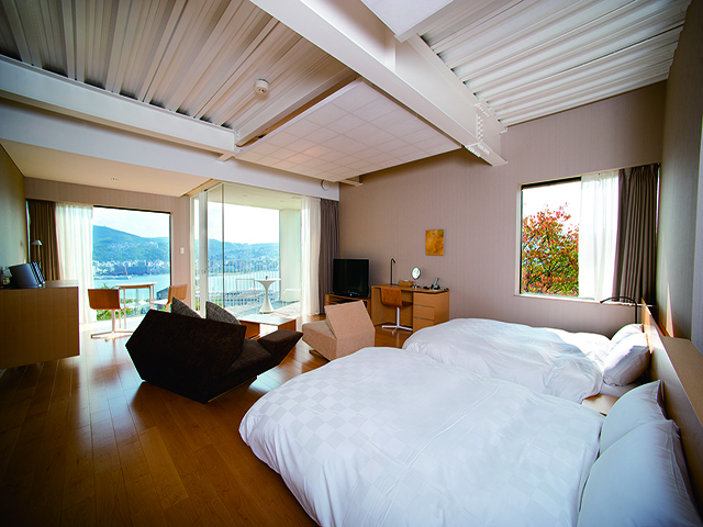 各お部屋に専用のテラスがついており、非日常の時間を堪能していただけます。バスルームから望む港の夜景も格別です。宿泊者だけに許される贅沢な寛ぎをお楽しみください。