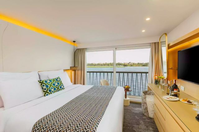 デラックス船の中でも特にスイートタイプのお部屋が多く、屋上にはプールを兼ね備えたサンデッキでもナイル川の風景を眺めながら快適にお過ごしいただけます。