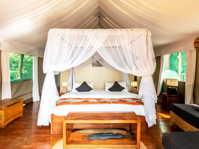 湖畔に佇む客室数わずか9部屋の、洗練されたデザインのテント式ロッジ。ホテル仕様のバスルームも各テントに備えられており、快適にお過ごしいただけます。カバの鳴き声や鳥のさえずりでの目覚めは、アフリカならではの体験です。