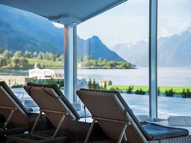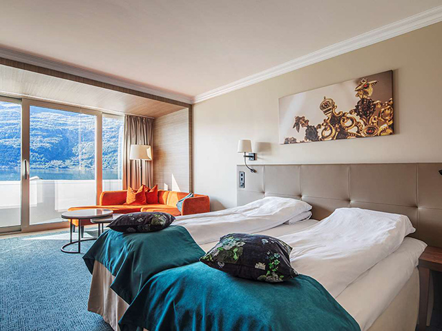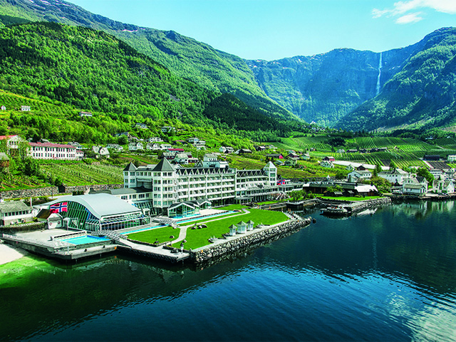 穏やかなハダンゲルフィヨルドに面した1846年創業の歴史あるホテルです。作曲家グリーグは度々この地を訪れ、その風景から曲のイメージを得たといわれています。なだらかな山々や果樹園が広がる牧歌的な風景が、落ち着いた時間を演出してくれます。
