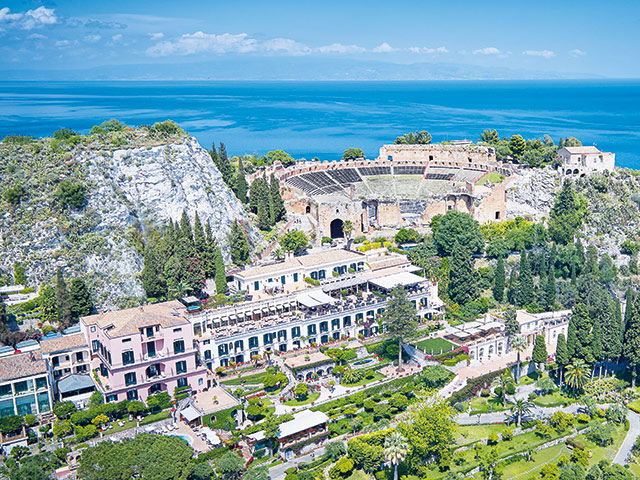豪華列車「ベニス・シンプロン・オリエント・エクスプレス」をはじめ、約40軒のラグジュアリーホテル、豪華列車、リバークルーズを展開するラグジュアリーブランド「ベルモンド」。「グランド・ホテル・ティメオ」はシチリア島随一のリゾート、高台の町タオルミナの紀元前3世紀に建てられたギリシャ劇場に隣接するラグジュアリーホテルです。美しい庭園と、紺碧のイオニア海と世界遺産エトナ山が織りなす夢のような景色を誇ります。