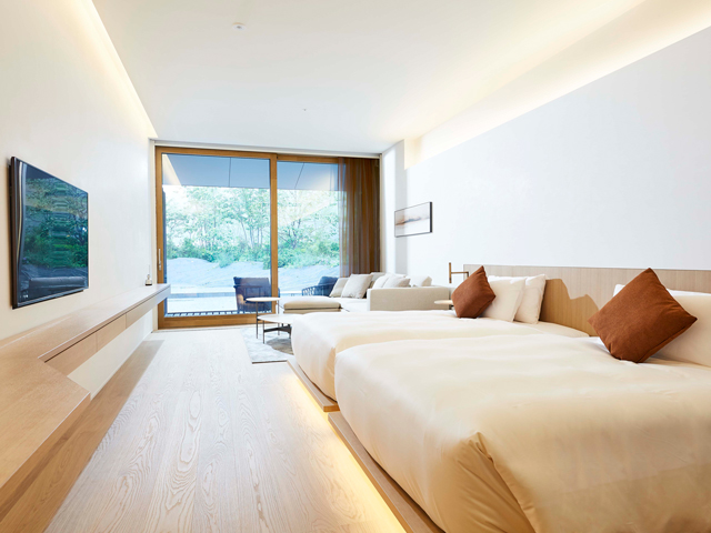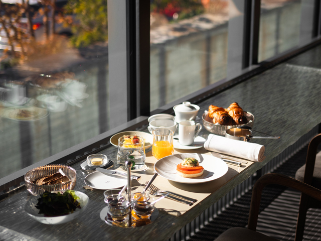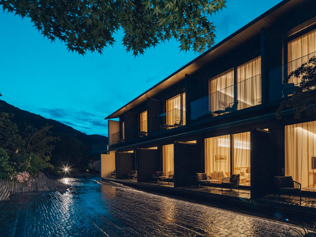 嵐山渡月橋の目の前に佇むラグジュアリーホテル。静けさを聞く川の音、橋を渡る月の光、風運ぶ朝露の香り、その日、その場所を訪れた人だけが見ることのできる、かけがえのない景色。そんな唯一無二の景色が、MUNI KYOTOにあります。嵐山の自然と調和し、嵐山の歴史に新たな彩りを添えるホテルでの滞在をお楽しみください。