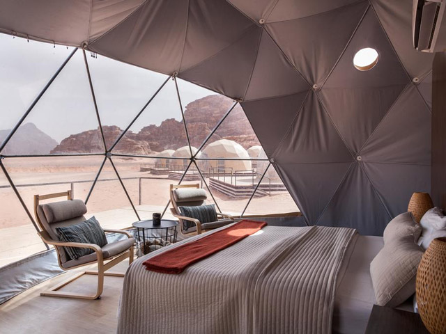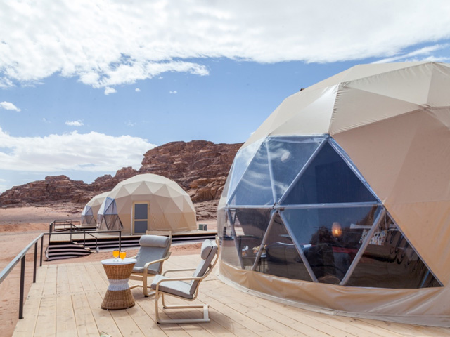 ワディ・ラム岩砂漠に佇むドーム型キャンプです。それぞれが独立したドーム型のお部屋には、温かみのある家具とシャワーが備え付けられ、快適にお過ごしいただけます。