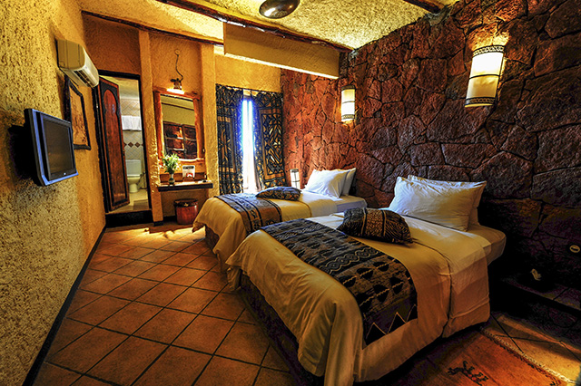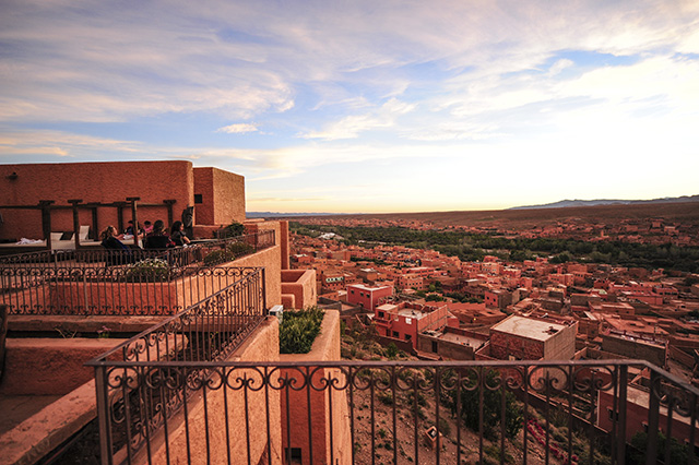 ダデス谷を望むホテル。魅力の一つは、テラスから眺める朝のダデスの町の美しさ。ユニークなアフリカン・デコレーションのレストランでのお食事もお楽しみください。