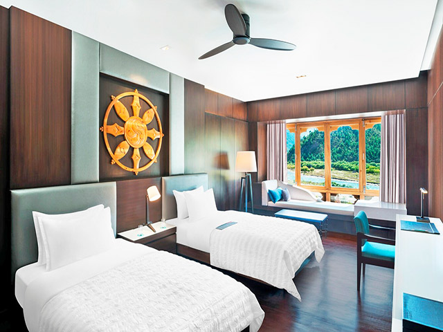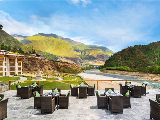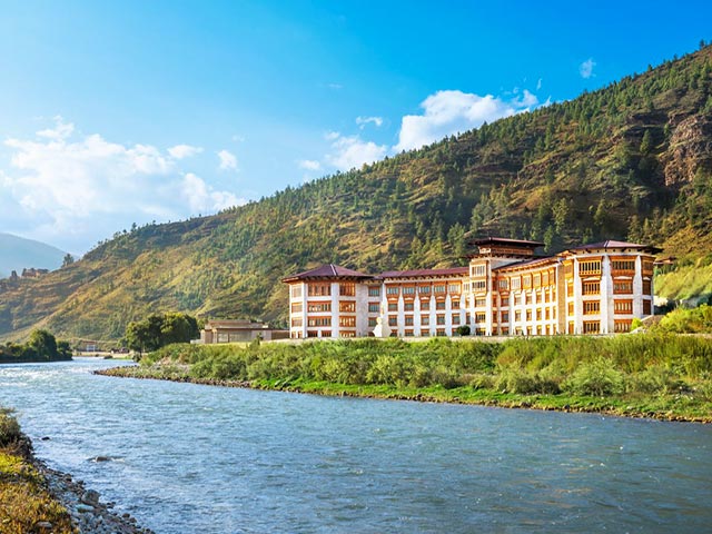 自然豊かなパロ川沿いに立つ、快適なデラックスホテルです。館内はブータンの伝統 建築をモチーフにした温かみのあるデザインで、文化の息づく空間の中、ブータンらしいひとときをお楽しみいただけます。