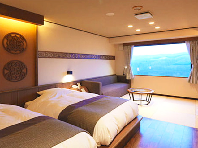 網走湖にほど近い丘の上に立つリゾートホテル。館内には古代民族の出土品をモチーフにしたデザインやオホーツク模様が用いられ、悠久の時に思いを馳せる空間が広がります。