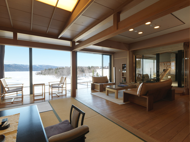 阿寒湖のほとりに立つ大人の隠れ家的宿。客室は全室露天風呂付きで、60㎡以上のスイート仕様です。各部屋には異なる選びぬかれた家具、調度品が配され、落ち着いた雰囲気が漂います。ゆったりとした滞在をお楽しみください。