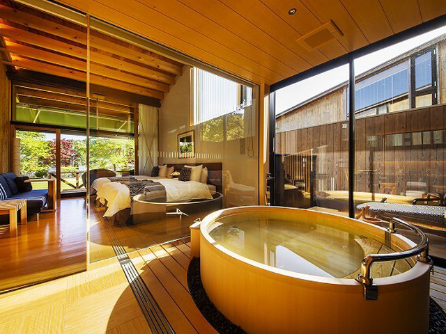 世界遺産高野山の山麓に佇む全8室のリゾートホテルです。客室は敷地の中に点在するコテージタイプ。紀州の杉や桧をふんだんに用いた贅沢な作りが特徴で、リラックスしながら極上のひとときをお過ごしいただけます。地元特産の「天野米」「高原野菜」や、和歌山の自然豊かな風土で育った食材を合わせたお料理は美しさと斬新さを放ち、旬の味わいだけでなく目でもお楽しみいただけます。