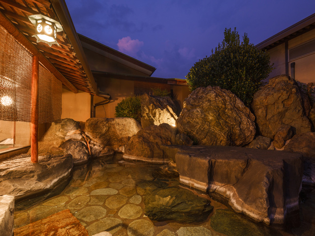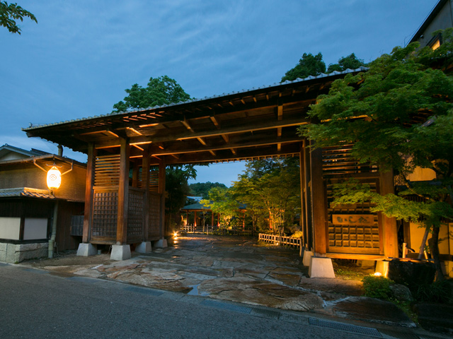 昼神温泉の山間に佇む純日本旅館。数寄屋造りの全17室の客室はすべて設えが異なり、どの部屋からも四季折々に美しく彩りを変える情緒豊かな庭園の景色を楽しめます。また、玄関を入ると目の前に広がる総檜造りの能舞台では、毎夜南信州の伝統芸能が披露される「紫宸殿(ししんでん)の宴」が開催されます。