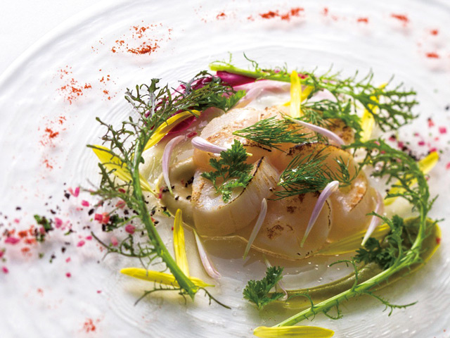 雄大な大雪山系の中でも最も美しいとされる大雪高原旭ヶ丘に広がる「大雪 森のガーデン」内に佇むオーベルジュ。大自然に包まれながらゆったりとした時間をお過ごしいただけます。フレンチとイタリアンを融合させた「世界に通じる北海道料理」にこだわった、総料理長・宮本慶知氏がふるまうお料理をご堪能ください。